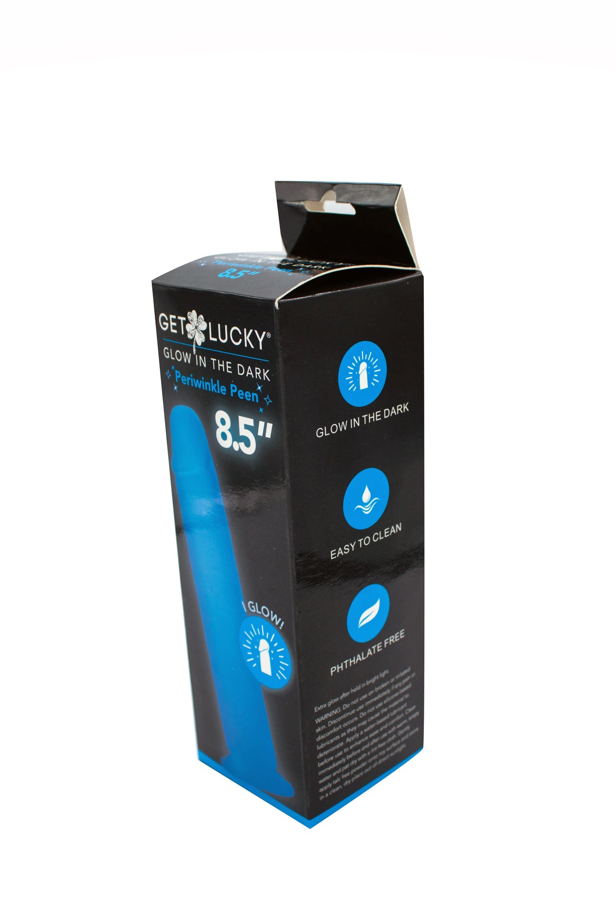 Overall Length: 8.5 inches (21.59 cm) Insertable Length: 8 inches (20.32 cm) Material: Body-safe TPE Waterproof: Yes Latex Free: Yes Phthalate Free: Yes Features: Realistic design, suction cup base, harness compatible, glow-in-the-dark Note: Expose to light prior to use to increase glow