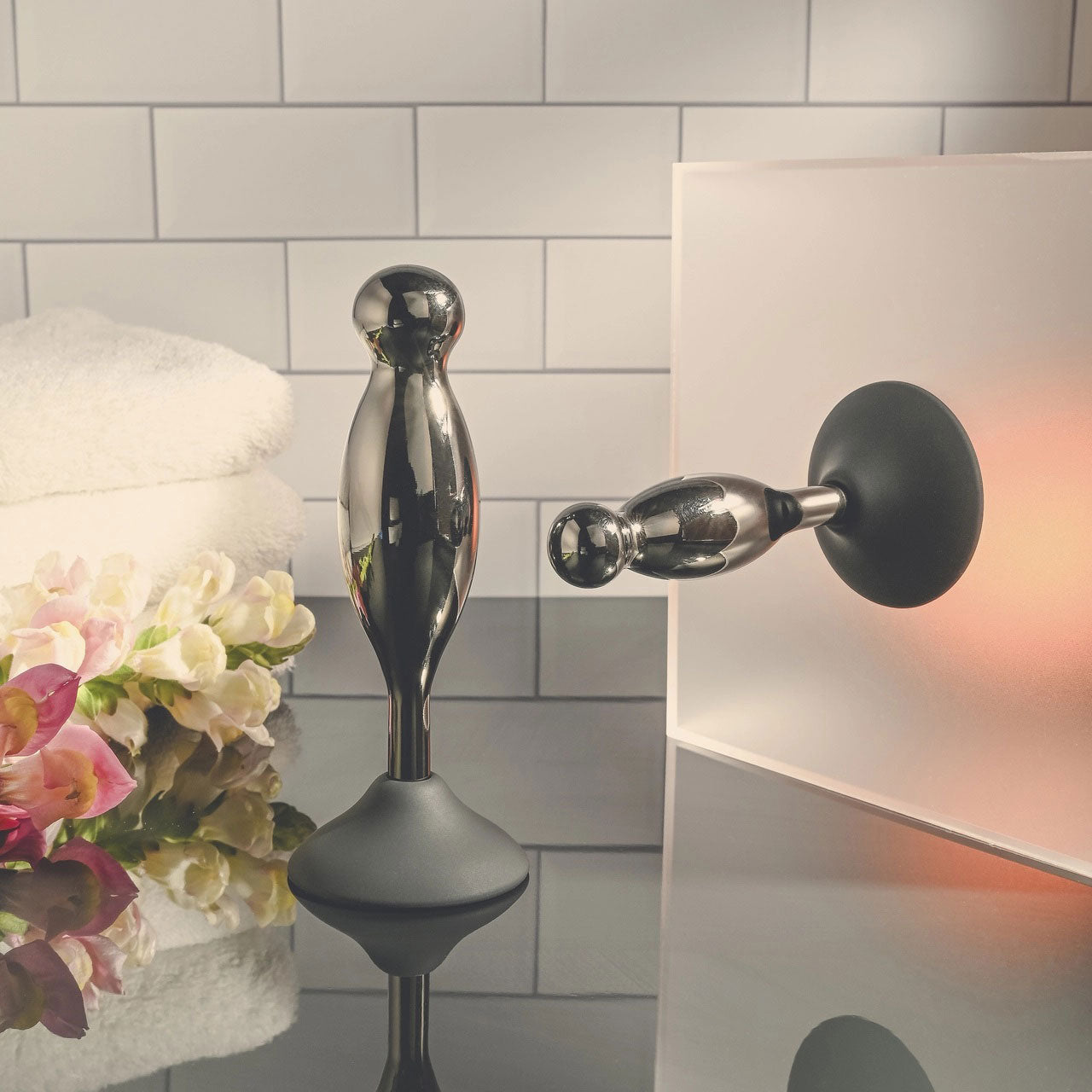 Material: Black chrome-finished aluminum alloy with silicone suction cup base
